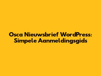 Osca Nieuwsbrief WordPress: Simpele Aanmeldingsgids