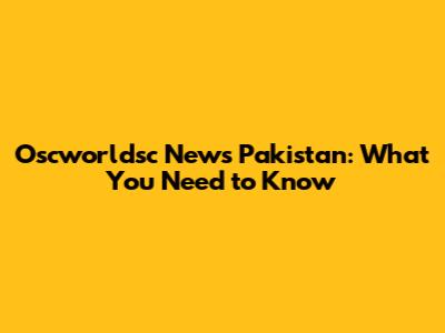 Oscworldsc News Pakistan: What You Need To Know