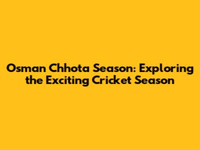 Hey guys! Are you ready to dive into the thrilling world of cricket? Today, we're going to explore everything about the Osman Chhota season. This isn't just about any cricket season; it's about the unique excitement, the standout players, and the unforgettable moments that define Osman Chhota's cricketing journey. So, grab your gear and let’s get started!