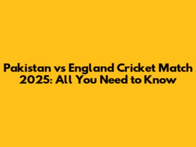 Pakistan Vs England Cricket Match 2025: All You Need To Know