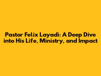 Pastor Felix Layadi: Life, Ministry, And Impact