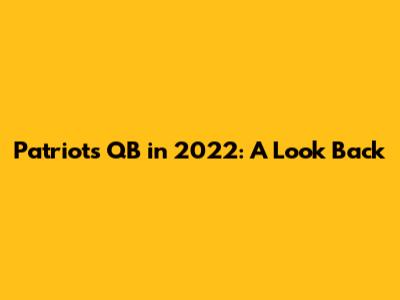 Patriots QB In 2022: A Look Back