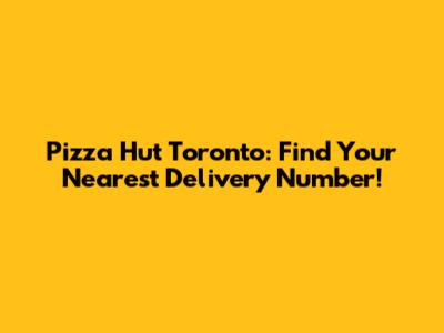 Pizza Hut Toronto: Find Your Nearest Delivery Number!