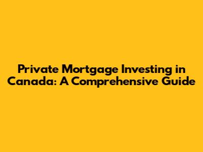 Private Mortgage Investing In Canada: A Comprehensive Guide