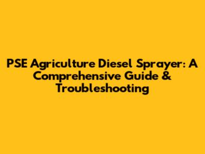 PSE Agriculture Diesel Sprayer: Guide & Troubleshooting
