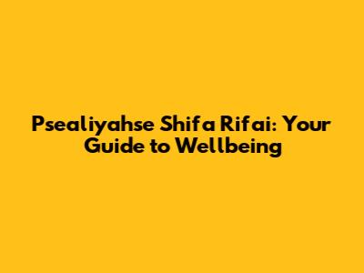 Psealiyahse Shifa Rifai: A Guide To Wellbeing