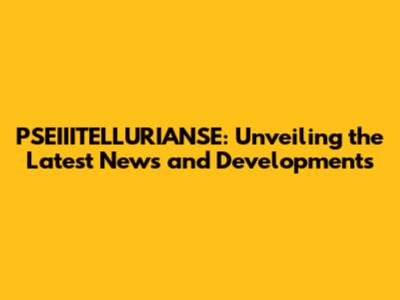PSEIIITELLURIANSE: Unveiling The Latest News And Developments