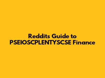 Reddit's Guide To PSEIOSCPLENTYSCSE Finance
