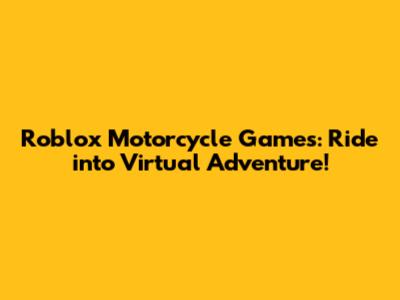 Hey there, gamers! Are you ready to rev up your engines and dive into the thrilling world of Roblox motorcycle games? If you're a fan of speed, stunts, and two-wheeled adventures, then you're in for a treat. Roblox offers a wide variety of motorcycle games that cater to every kind of rider, from casual cruisers to hardcore racers. Let's explore what makes these games so awesome and why you should definitely check them out.