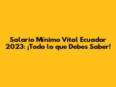 Salario Mínimo Vital Ecuador 2023: ¡Todo Lo Que Debes Saber!