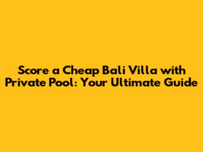 Score A Cheap Bali Villa With Private Pool