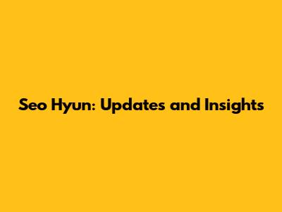 Seo Hyun: Updates And Insights