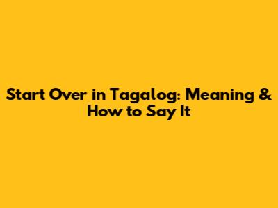 Start Over In Tagalog: Meaning & How To Say It