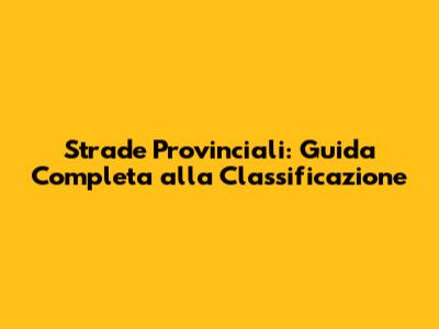 Strade Provinciali: Guida Completa Alla Classificazione