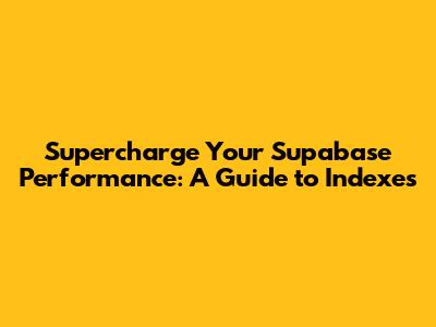 Supercharge Your Supabase Performance: A Guide To Indexes