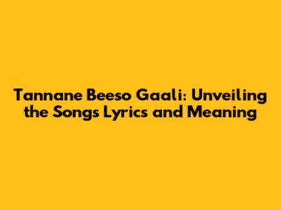 Tannane Beeso Gaali: Unveiling The Song's Lyrics And Meaning
