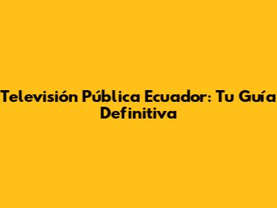 Televisión Pública Ecuador: Tu Guía Definitiva