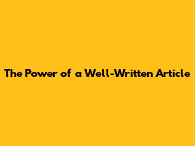 The Power Of A Well-Written Article