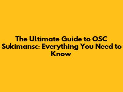 The Ultimate Guide To OSC Sukimansc: Everything You Need To Know