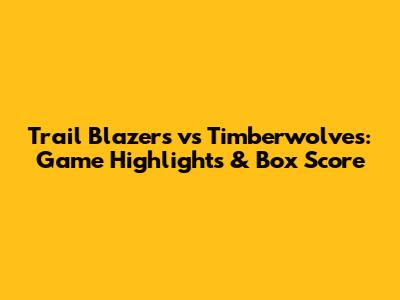 Trail Blazers Vs Timberwolves: Game Highlights & Box Score