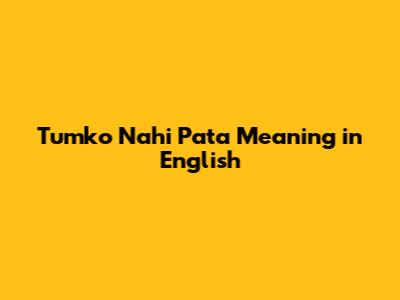 Tumko Nahi Pata: What Does It Mean In English?