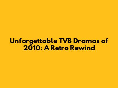 Beyond the Screen: The Lasting Legacy of TVB Drama 2010
