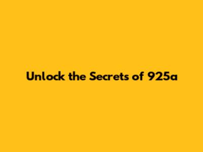 Unlock The Secrets Of 925a