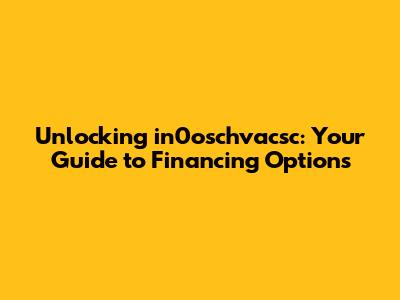 Unlocking In0oschvacsc: Your Guide To Financing Options
