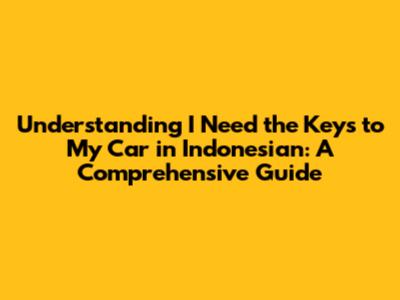 Unlocking The Meaning: 'I Need The Keys To My Car' In Indonesian