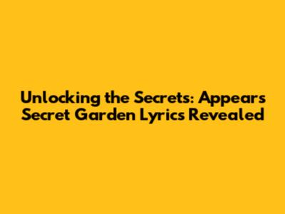 Unlocking The Secrets: Appear's Secret Garden Lyrics Revealed