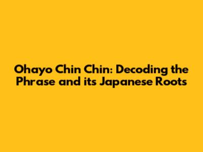 Unraveling Ohayo Chin Chin: Meaning & Cultural Context