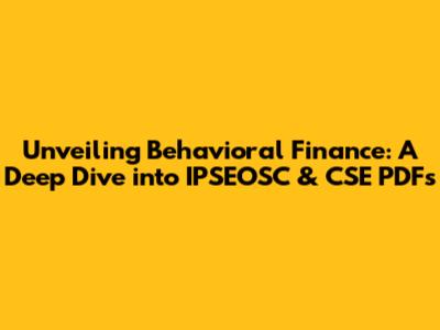 Unveiling Behavioral Finance: A Deep Dive Into IPSEOSC & CSE PDFs