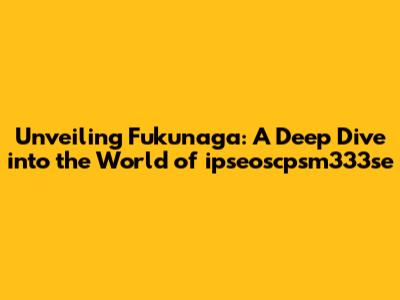 Unveiling Fukunaga: A Deep Dive Into The World Of Ipseoscpsm333se