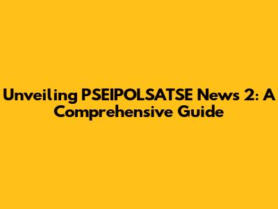 Unveiling PSEIPOLSATSE News 2: A Comprehensive Guide