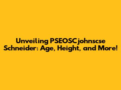 Unveiling PSEOSCjohnscse Schneider: Age, Height, And More!