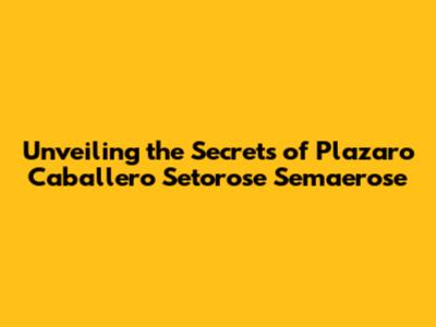 Unveiling The Secrets Of Plazaro Caballero Setorose Semaerose