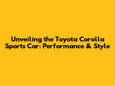 Unveiling The Toyota Corolla Sports Car: Performance & Style