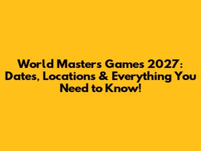 World Masters Games 2027: When and Where?