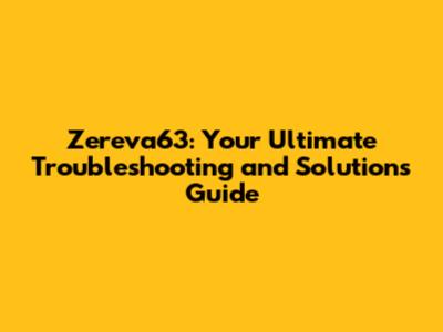 Zereva63: Troubleshooting & Solutions Guide